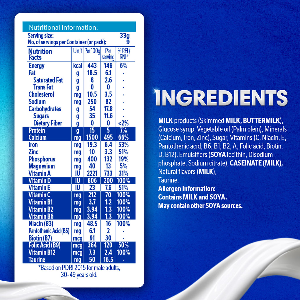 - Contains Tibay Katawan Nutrients: 100% Vitamin D, high in Calcium, and source of Protein for bone and muscle development; 100% Vitamin C for immunity