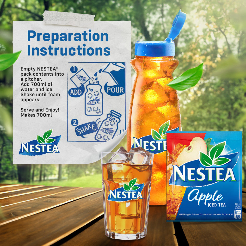 Enjoy a crisp and refreshing taste with Nestlé Nestea Apple Flavored Powdered Iced Tea Drink Mix, perfect for any occasion. Each 19g sachet makes about 0.7 liters of tea drink, blending real tea leaves with a fruity apple flavor for a satisfying beverage.