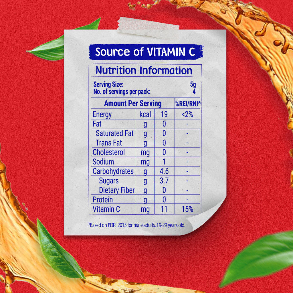 Nestlé Nestea is part of our powdered drink mixes range, offering a convenient way to enjoy flavor juice drinks at home or on the go. Tea sediments may occur as it is made with real tea leaves.